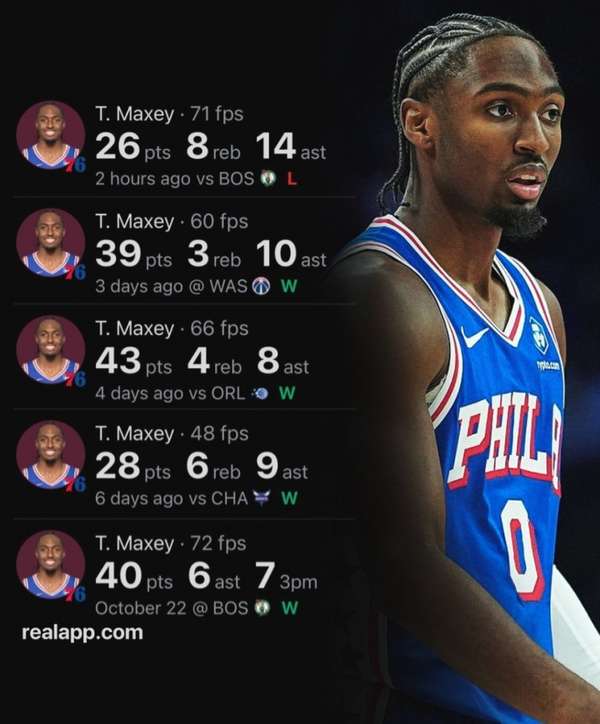 尽管马克西本场16投8中、三分9中4的进攻效率可圈可点,但球队仍以1分之差饮恨赛场。更令人瞩目的是,这位年轻后卫在赛季前五场比赛中交出了场均35.2分的惊人表现,这一数据仅次于2019年的詹姆斯·哈登——当时效力于火箭队的哈登在赛季前五战场均砍下36.6分。