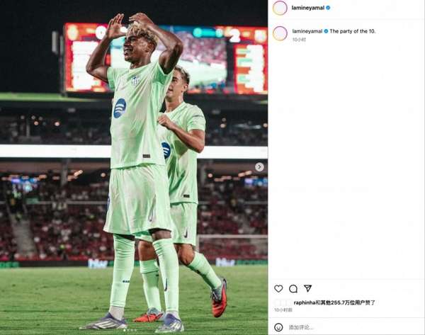 身披传奇10号球衣的亚马尔贡献1传1射,不仅主导了球队进攻,更以出色表现当选本场最佳球员。赛后,这位年轻新星在社交媒体分享比赛瞬间,并配文"10号的派对",展现出新一代巴萨核心的自信风采。
