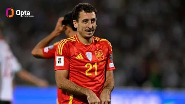 在世界杯预选赛欧洲区小组赛第6轮中,西班牙队客场以6-0的比分大胜土耳其队,前锋奥亚萨瓦尔表现尤为突出,单场贡献了3次助攻。据Opta数据的最新统计,这位西班牙国脚在2025年参与的6场国家队比赛中,已经直接制造了9粒进球,具体包括4次破门和5次助攻。