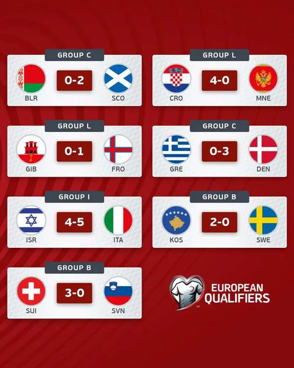 本轮其余比赛同样看点十足。北欧劲旅瑞典意外翻车,在客场0-2不敌科索沃;瑞士主场3-0完胜斯洛文尼亚,稳固了小组领先位置。此外,丹麦客场3-0力克希腊,苏格兰作客2-0击败白俄罗斯,法罗群岛也以1-0小胜直布罗陀。
