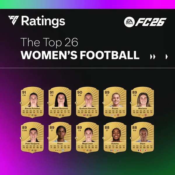 EA公布FC26女足能力值榜单 普特利亚斯邦马蒂并列榜首
